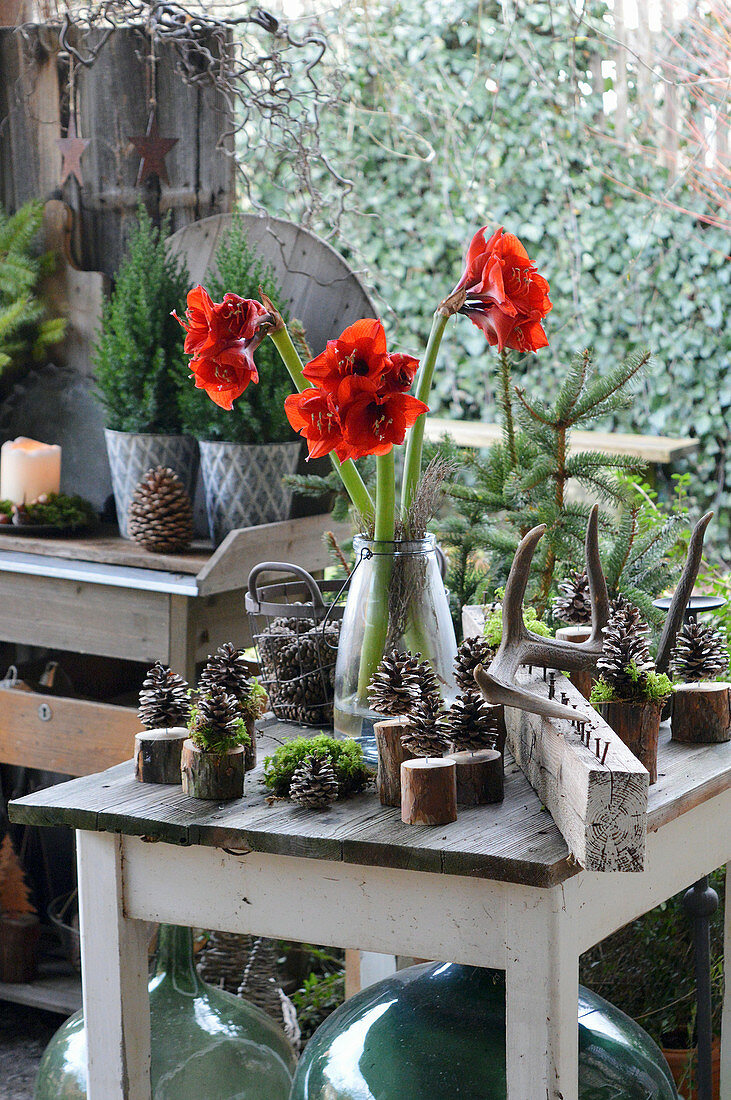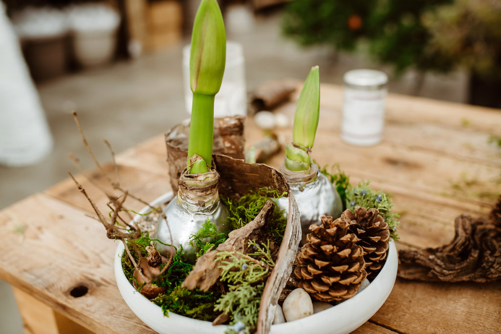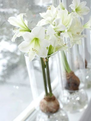 И накрая, няколко идеи за декорация с амарилиси. Забележете, че не му трябва нищо, дори почва, а само малко вода.