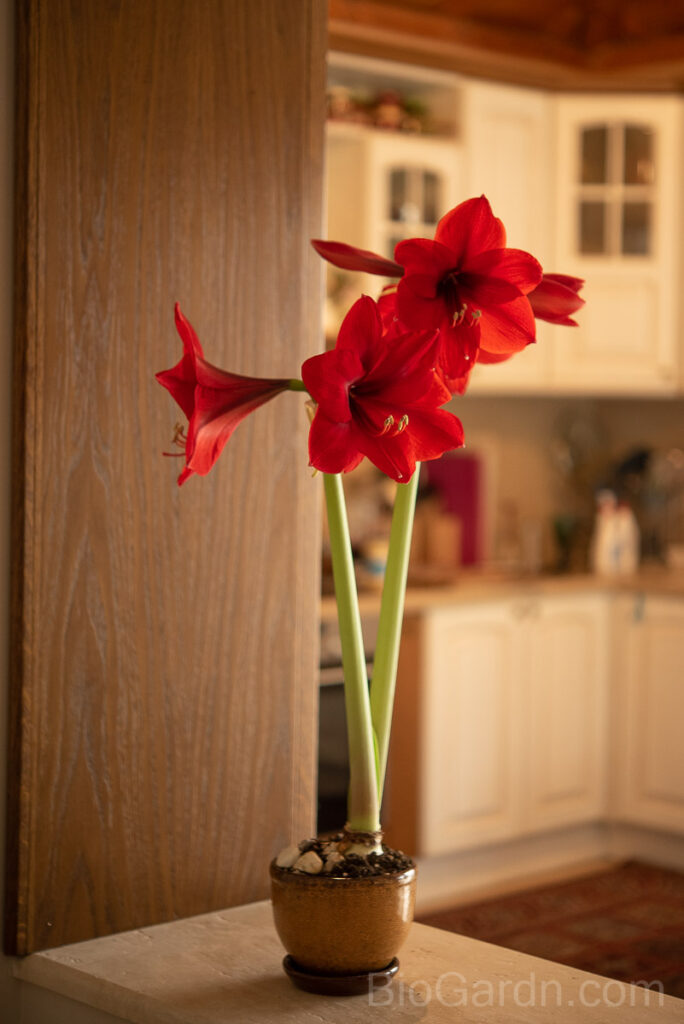 Амарилисите са вълшебно празнично цвете! Могат да бъдат част от жива коледна декорация, ако засадим луковицата 4 седмици преди Коледа. Тези големи, жилави луковици не само се отглеждат лесно, но и произвеждат ефектни цветове в червени, розови, оранжеви и бели нюанси, които цъфтят седмици на закрито. За съжаление, след цъфтежа някои смятат луковицата за непотребна и я изхвърлят.