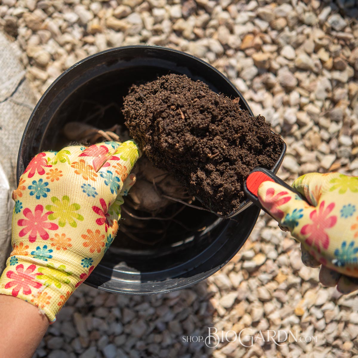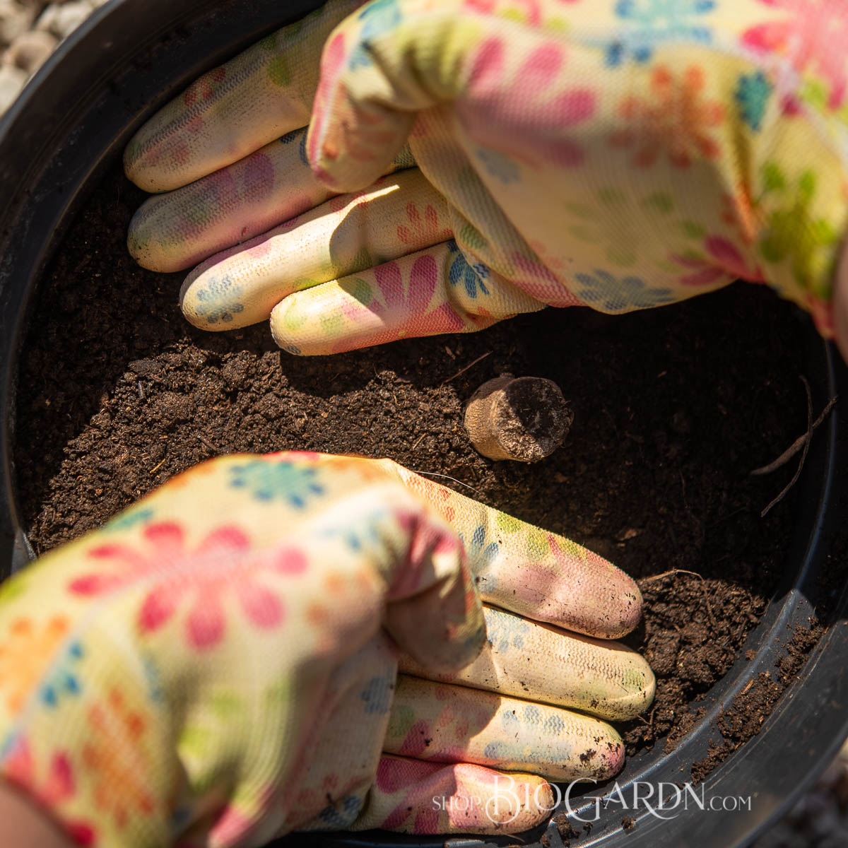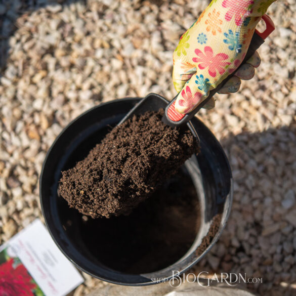 - Засипете с почва, притиснете леко и полейте обилно.