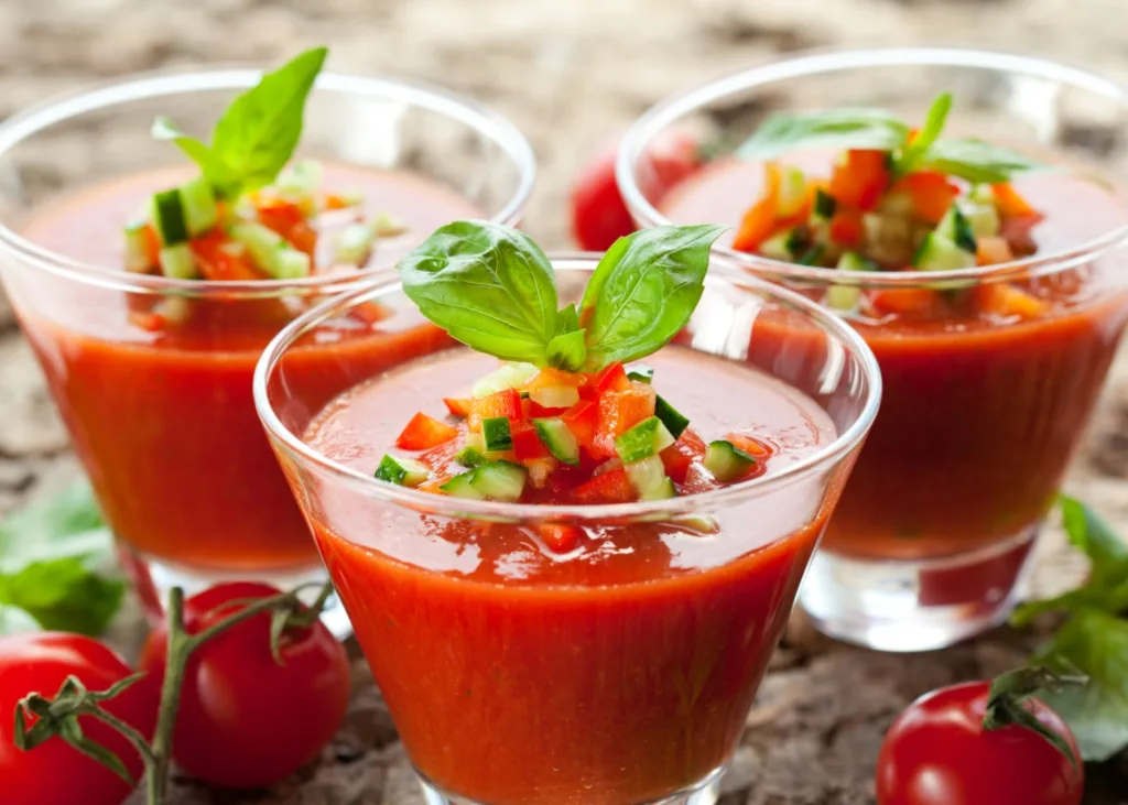 Рецепта за за италианска доматена студена супа със зеленчуци.